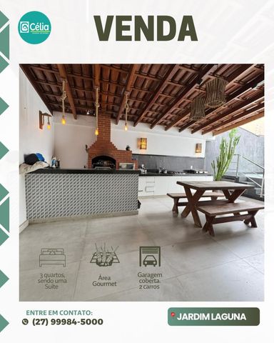 Casa - Venda. Jardim Laguna ✓ Área de churrasco ✓ Jacuzzi ▪ Casa térrea contendo: ✓ 03 quartos sendo uma suíte ✓ Sala ✓ Banheiro social ✓ Cozinha ✓ Marcenaria completa ✓ Garagem coberta para 2 carros ✓ lavanderia Valor: R$ 950 mil reais Endereço: Jardim Laguna – Linhares/ES - Preço, disponibilidade e informações poderão sofrer mudanças sem aviso prévio. Favor contatar nossos consultores. Célia - Corretora de Imóveis (CRECI: 4161/ES)